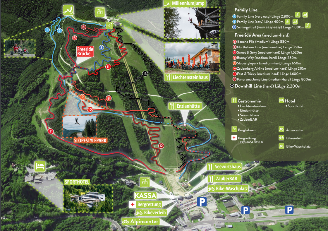 Bikepark Semmering obejmuje różne trasy i zawiera odpowiednią ofertę dla wszystkich grup wiekowych i poziomów umiejętności. Czy to rekreacyjna jazda na trasie rodzinnej, aby poznać okolicę, czy dla ekspertów na trasie freeride i downhill